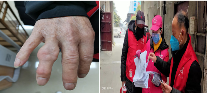 方碑社区6队队长尹友成,一名有着50年“党龄”的共产党员,自社区启动疫情防控工作以来,他始终坚守一线,不畏艰辛,深入负责区域每家每户,入户走访、宣传政策、耐心劝解,做深做细防控每项工作。由于常年患有痛风,尹队长走路有些颠簸,步子有些缓慢,所以他总是每晚工作到深夜才回去休息。对于入户走访尹队长可是一点不敢含糊,对辖区内的总户数、总人口、外来人口等如数家珍,对每家每户必须亲自走访、亲手敲门,三轮走访下来,因为长期敲门,他的手已经浮肿明显。尹队长说:“我不会因为现在身体的一点小状况就停止做工作,我会努力克服眼前困难,继续前行,践行共产党员初心,永葆共产党员本色。”