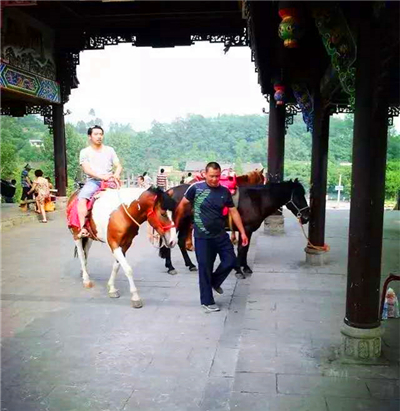 没几分钟,几个人就骑走了几匹马,唯独剩下那匹矮小黑马,朋友说他要骑马体验一回,于是便牵着马儿愉快地骑着走,骑到观音庙下又折回,路上听闻马主人说马儿九点多就来了,一直没有吃什么东西,今天游客多,它们多工作了几个小时,所以在观音庙下它还想往前走,大概累了想早早收工。我想不仅对人,对任何生灵来说,有一份难得的安闲,不被过分辛劳,大概都是幸福。