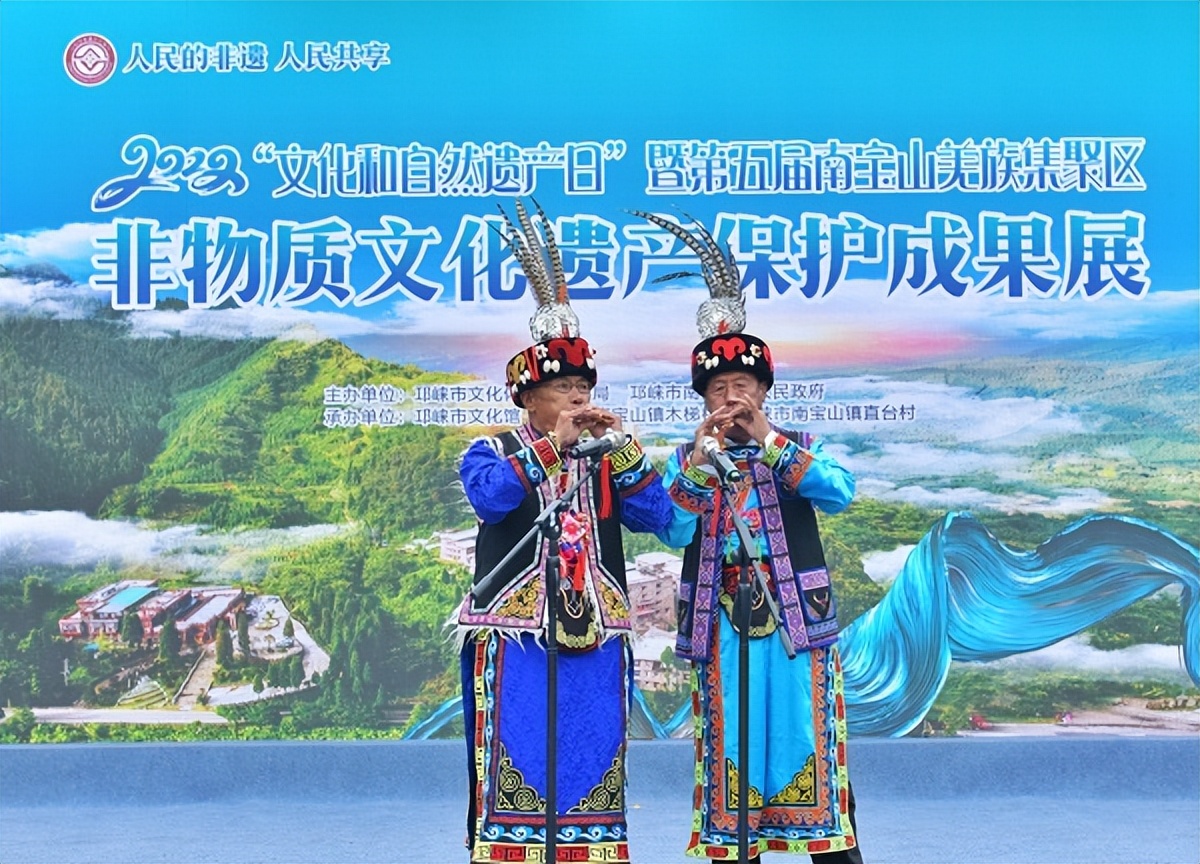 自2018年起,南宝山羌族集聚区非物质文化遗产保护成果展已分别在南宝山镇木梯村及直台村成功举办了五届。据邛崃市文旅局相关负责人介绍,为原汁原味的留住羌民族文化底蕴,邛崃市多次召开南宝山镇羌族移民村羌族文化保护传承专题研究会议,并在集聚区内开展了大规模的非遗资源普查工作,同时,派专人多次到汶川县,对原汶川县人民政府公布的非遗性项目和汶川县文体广新局认定的非遗代表性传承人文件进行收集,掌握了移民村羌族文化遗产的种类、数量、分布状况和濒危程度,并按轻重缓急开展抢救保护工作。
