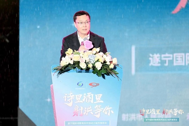为提升射洪市城市知名度与美誉度、促进地方文化旅游交流与合作、增强子昂文化吸引力与影响力,助推射洪天府旅游名县的创建,由中共射洪市委、射洪市人民政府主办,中共射洪市委宣传部、射洪市文化广播电视和旅游局承办,四川广播电视台协办的遂宁国际诗歌周系列活动之城市推荐会于4月28日在成都市高新区交子大道音乐广场举行。